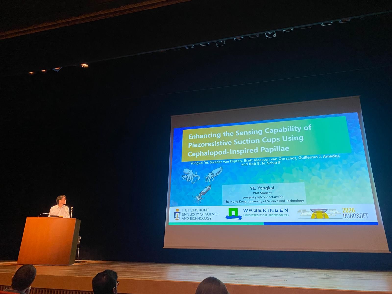 At the main conference, Yongkai Ye presented his extended abstract on “enhancing the sensitivity of piezoresistive suction cups using cephalopod-inspired papillae” on stage, as one of the 10 extended abstracts (out of a total of 212) nominated for the extended abstract award. Special thanks to our collaborators on this project Guillermo Amador, Brett Klaassen van Oorschot, and Guoxin FANG.